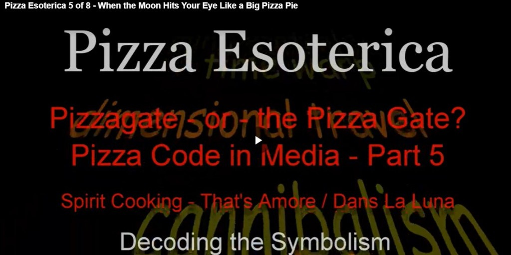 I recently revisited an old post of mine from 2019 which comprised 8 youtube videos from the Open Scroll. They were a deep dive into pizza symbolism, in a series called Pizza Esoterica Pizzagate Decoded (Illuminati Pizza Codes – Deep Decode Videos) [9]
